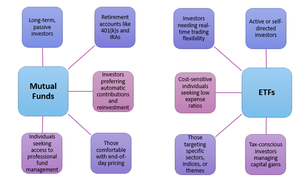 Investors looking to build diversified portfolios often choose between mutual funds and exchange-traded funds (ETFs). Both allow for broad exposure to a mix of assets such as stocks, bonds, or commodities, and help reduce risk through diversification. However, key differences in how these funds are structured, traded, and taxed can make one more appropriate than the other depending on your financial goals.