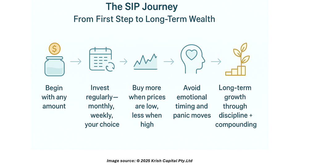 - Access and affordability. SIPs let people start small — often with modest minimums — so becoming an investor doesn’t require a windfall. This democratizes access to funds across countries and income levels.