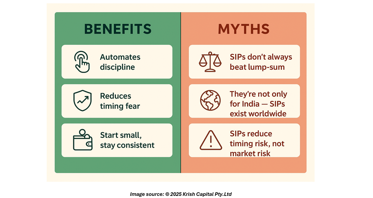 Truth: While SIPs are extremely popular in some countries (India’s mutual-fund SIP culture is a notable example), the practice of periodic investing exists globally — think payroll contributions to retirement plans or automatic ETF purchases. SIP is a delivery method; the investing principles are universal.