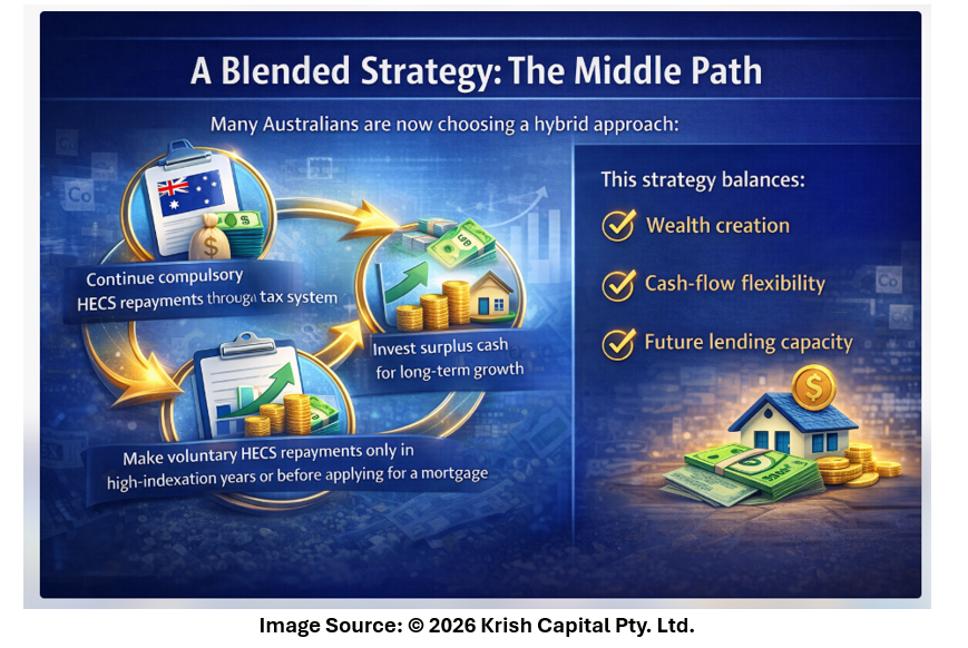 Because Superannuation offers tax advantages and long-term compounding, additional concessional contributions can sometimes deliver a stronger outcome than early HECS repayment—particularly for higher-income earners.