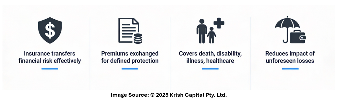 Insurance does not eliminate risk, but it can reduce the financial impact of events that are difficult to predict or self-fund, particularly when income is interrupted or large expenses arise suddenly.