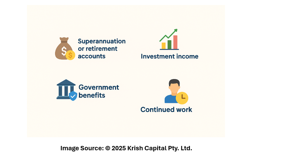 - Government benefits: Programs like Australia’s Age Pension or Social Security in the U.S. may offer partial support depending on your income and assets.