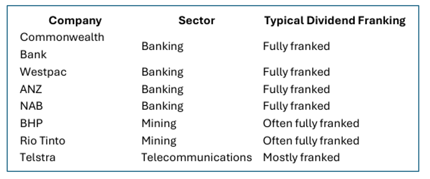 Some of the most famous fully franked dividend payers in Australia include: