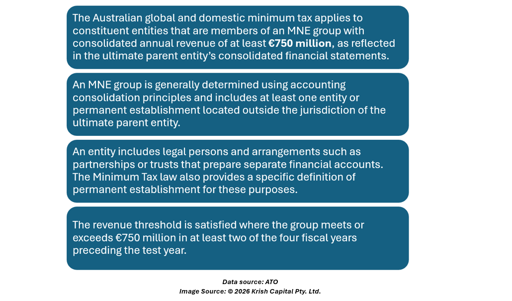 The domestic minimum tax broadly applies to Australian constituent entities within MNE groups that are subject to the global minimum tax framework.