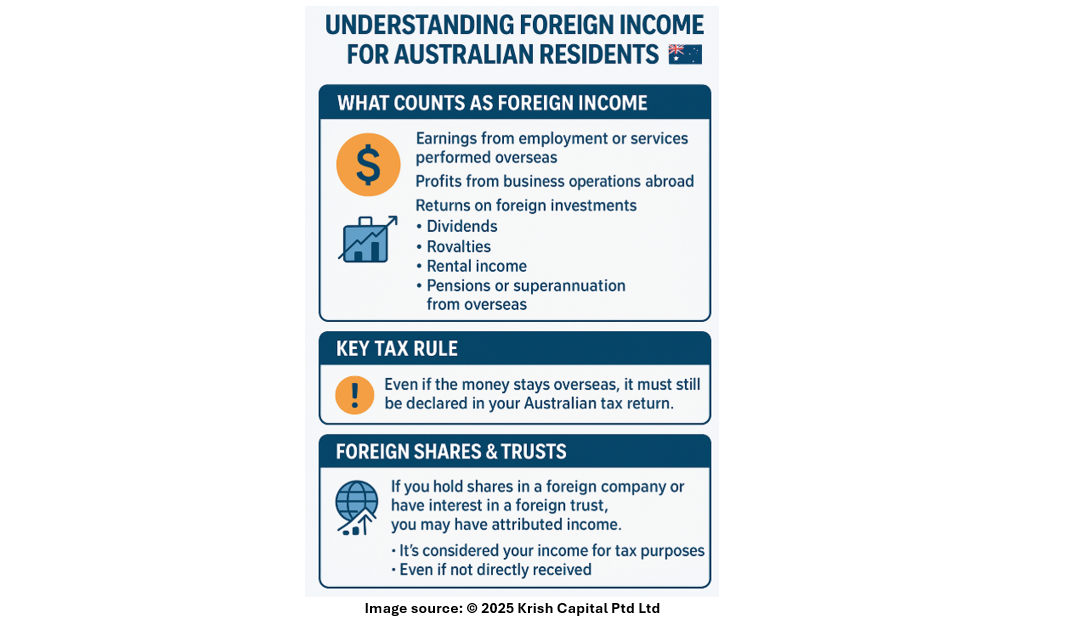 If you work overseas or provide services to a foreign organisation, the income must be reported as if earned in Australia. This includes salaries, consultancy payments, and business profits. Payments received from foreign-hosted platforms—such as freelance or influencer activities—also fall under this rule. The same applies to directors’ fees or contract work performed for overseas entities.