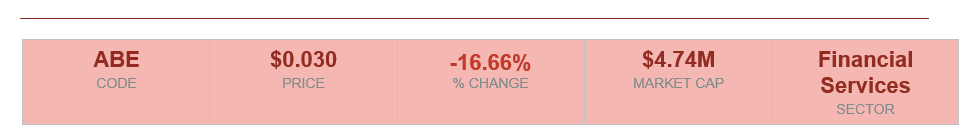 ABE Drops Nearly 14% on Ultra-Thin Volume