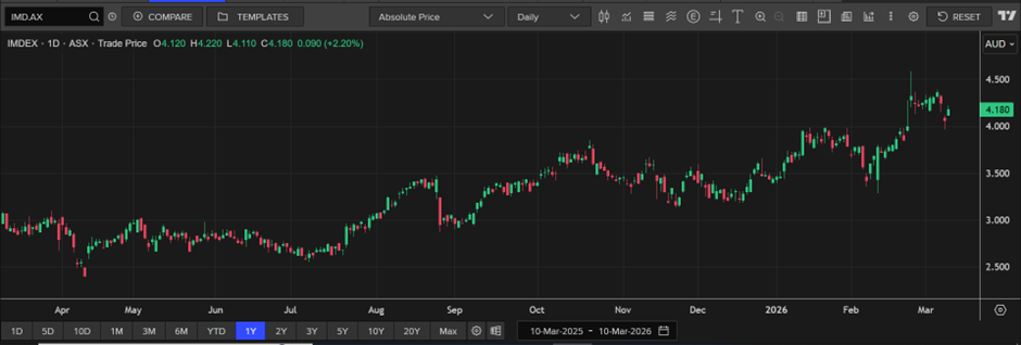 IMDEX shares have historically moved in line with mining sector sentiment.
