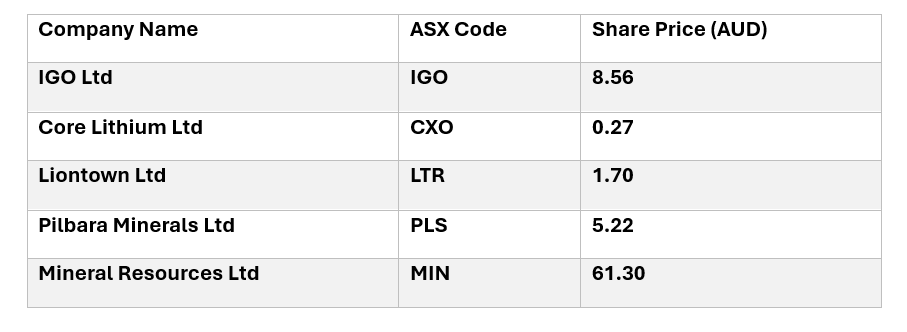 Other notable ASX lithium and spodumene names include Lepidico Ltd (ASX:LPD), Global Lithium Resources Ltd (ASX:GL1), Power Minerals Ltd (ASX:PNN), Patagonia Lithium Ltd (ASX: PL3), and Premier1 Lithium Ltd (ASX:PLC), representing smaller or exploration-stage projects with spodumene potential. These companies are frequently highlighted by market brokers and investment analysts for growth opportunities.