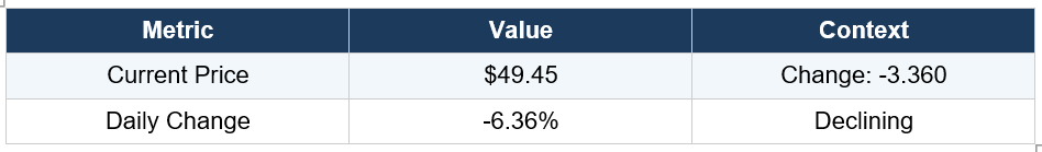 As of 9 March 2026, BHP Group is trading at $49.45, representing a daily decline of 6.36% with a change of $-3.36.