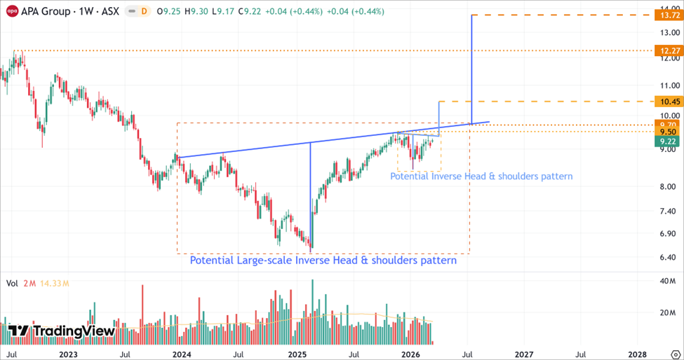 APA Group (ASX:APA) is a story of defensive fundamental resilience meeting a structural technical breakout. While its stable yield provides a solid foundation for value investors, the emergence of nested Inverse Head and Shoulders patterns suggests the stock is being re-rated for its next major growth cycle. Until the $9.70 level is decisively cleared, some consolidation is to be expected, but a successful breakout would position APA to challenge its historical highs near $13.72.