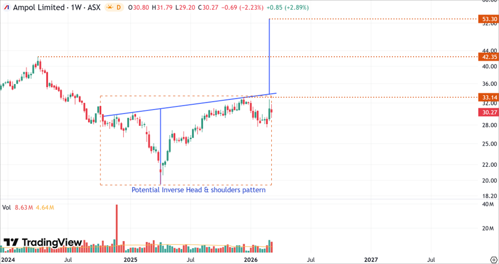 - ALD is forming a potential large-scale inverse head and shoulders pattern.