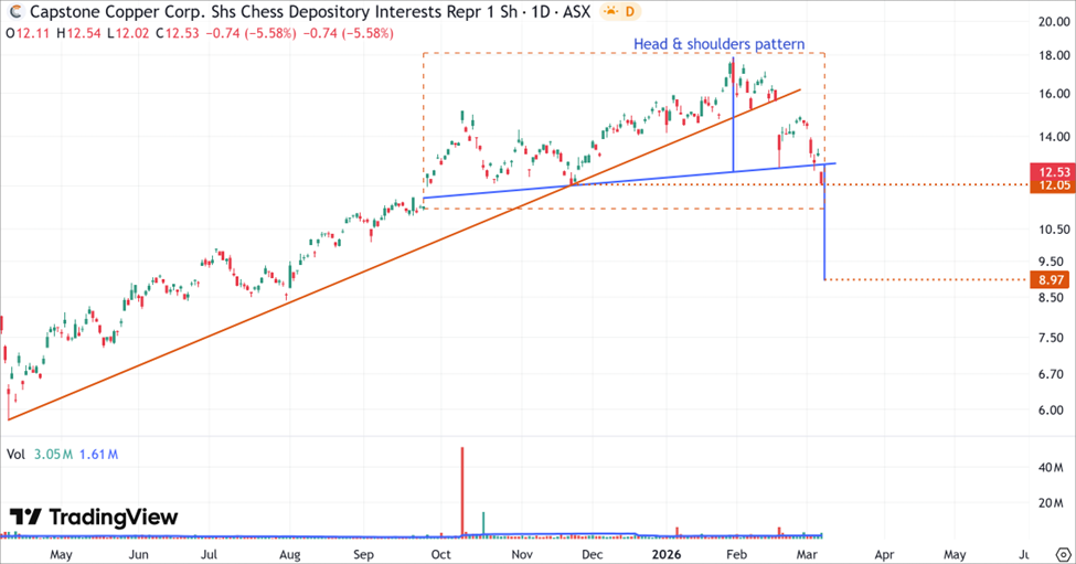 Capstone Copper (ASX:CSC) is currently locked in a battle between its impressive long-term growth story and the market's concern over near-term margin pressure and flat production guidance. While the company's fundamentals remain robust, with record 2025 earnings and a de-risked balance sheet, the technical "Head & Shoulders" breakdown suggests that investors are currently more focused on the risks of a transitional year than the rewards of 2027 production peaks.