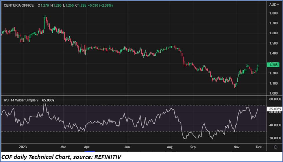 Centuria Office REIT (ASX: COF) is a pure play office REIT firm which provides investors a chance to invest in commercial property through a real estate investment trust. The company owns a portfolio of office assets in core submarkets across Australia. COF is included in the S&P/ASX 300 index.