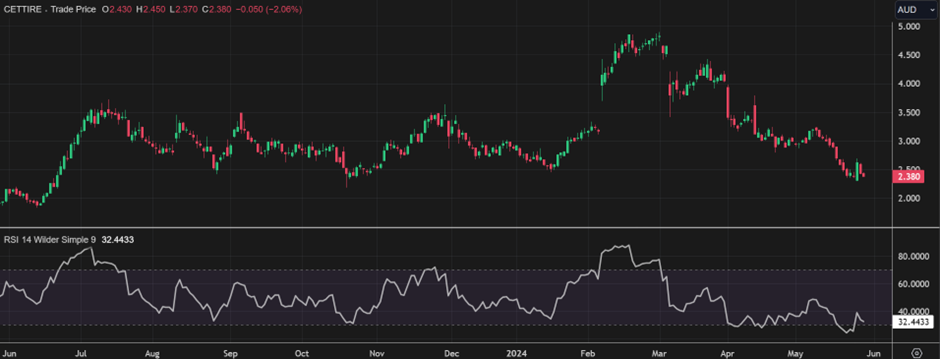 CTT shares closed 2.06% lower at AUD 2.43 apiece on 28 May 2024. With this, in the last one year, CTT’s share price has increased by 22.68%, while in the last three months, it has declined by over 50%.