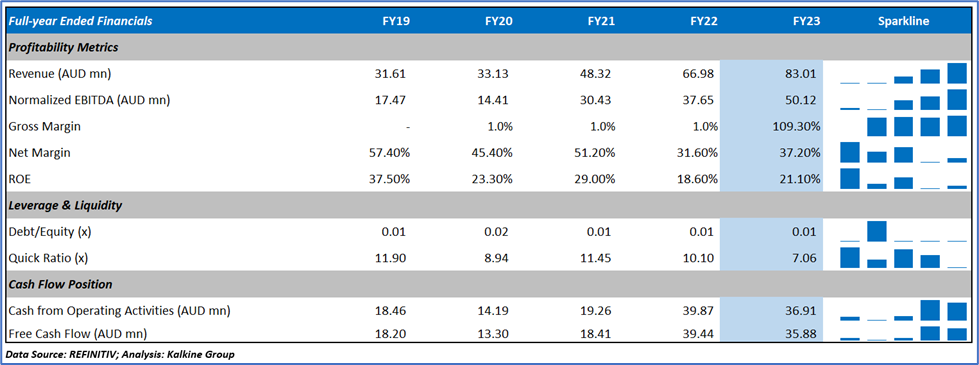 The company informed that it plans to expand its business in the Middle East, Europe and North America, backed by its cash position of AUD 156.8 million at 30 June 2023.