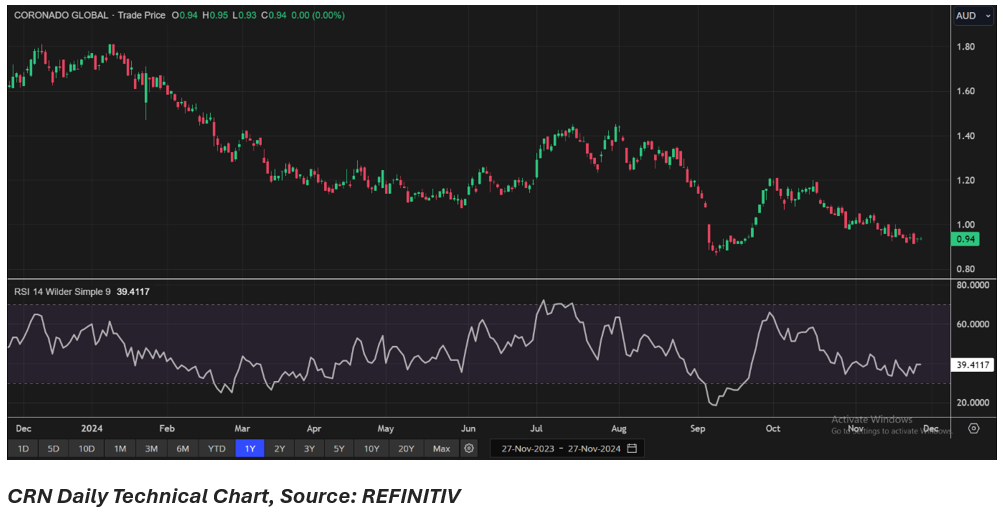 CRN shares closed at AUD 0.935 apiece on 27 November 2024. Over the past one year, CRN’s share price has dropped by almost 43.84% and in the last three months, the share price has declined by nearly 21.43%.