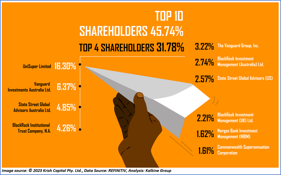 The top 10 shareholders of GPT have nearly 45.74% stake in the company, while the top four have around 31.78% stake. UniSuper Limited and Vanguard Investments Australia Ltd. have the maximum stake in the firm, with a shareholding of ~16.30% and ~6.37%, respectively.