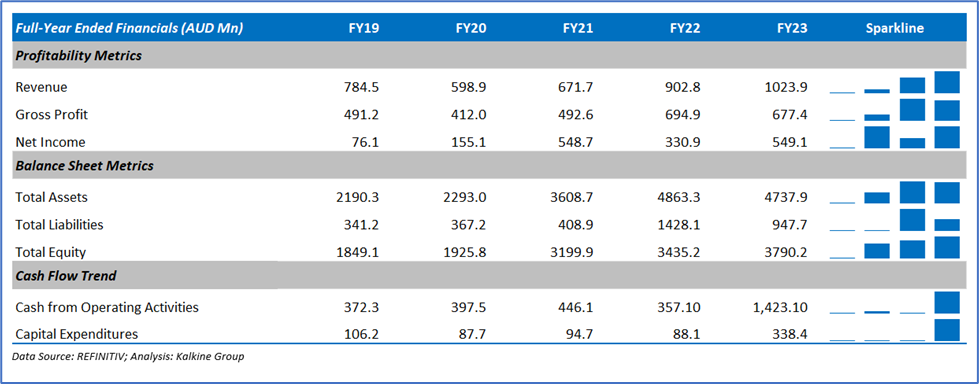The company delivered significant growth in its earnings in the financial year 2023 (FY23), I Its trading revenue increased by 13.4% YoY to AUD 1.024 million, underlying EBITDA grew by 177.1% YoY to AUD 1,987 million, and NPAT surged by 66% YoY to AUD 549 million.