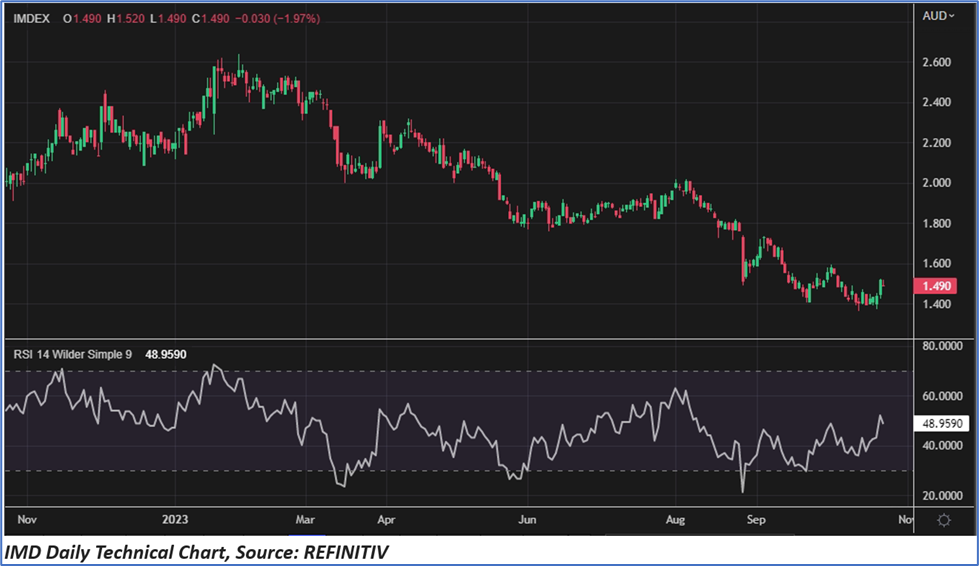Shares of IMD closed 1.97% down at AUD 1.49 apiece on 23 October 2023. With this, IMD’s share price dropped by 25.80% in the past one year and decreased by 31.34% in the last six months.