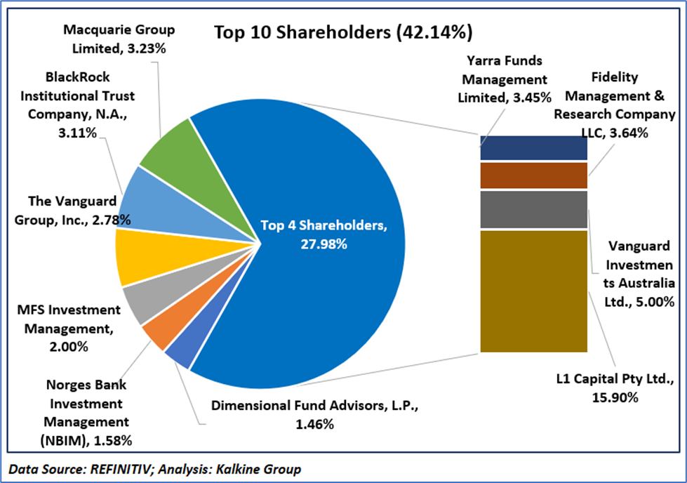 The top 10 shareholders of IMD have nearly 42.14% shareholding in the firm, while the top four have around 27.98% stake. L1 Capital Pty Ltd. and Vanguard Investments Australia Ltd. have the highest stake in the company, with a shareholding of ~15.90% and ~5.00%, respectively.