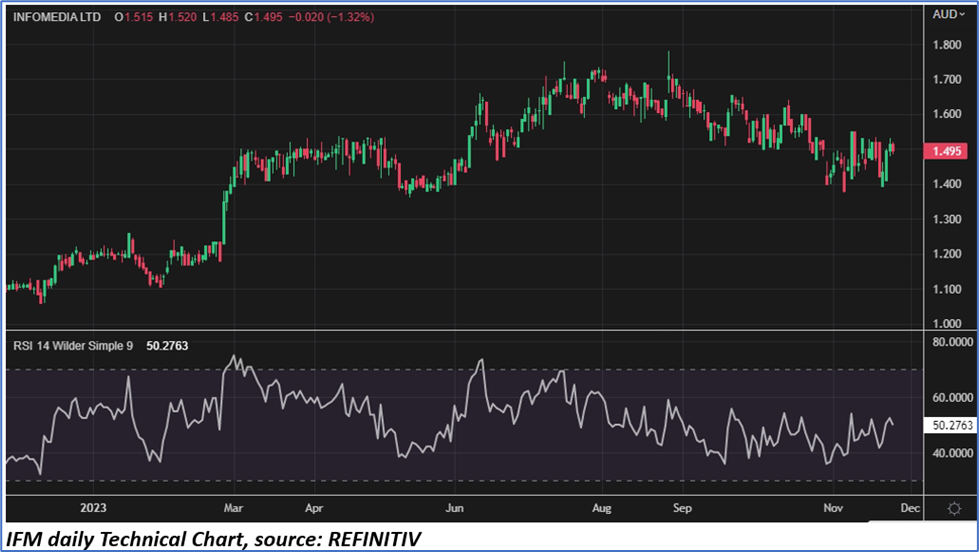 The 52-week high of IFM is AUD 1.78, recorded on 28 August 2023, while the 52-week low is AUD 1.06, recorded on 9 December 2022.