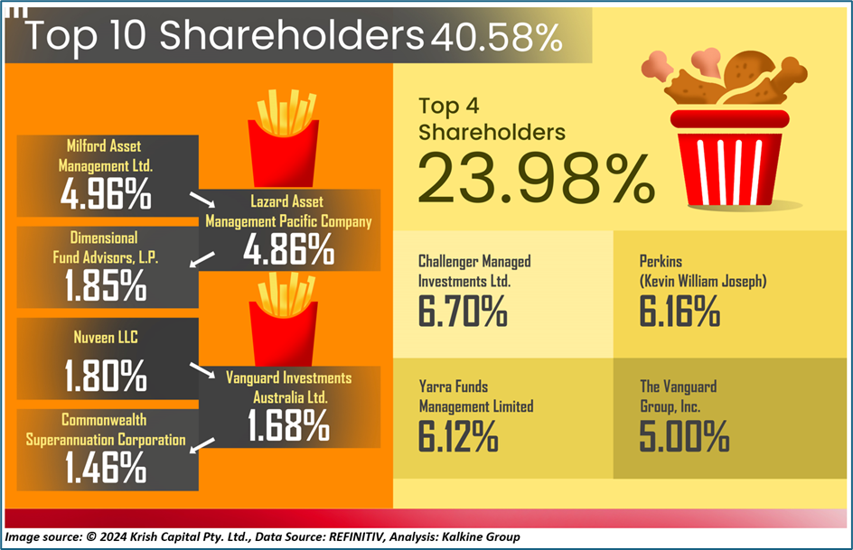 Top 10 shareholders of CKF have around 40.58% shareholding in the firm. The highest stake in the firm is held by Challenger Managed Investments Ltd., with a shareholding of around 6.70%, followed by Perkins (Kevin Williams Joseph) with a shareholding of 6.16%.