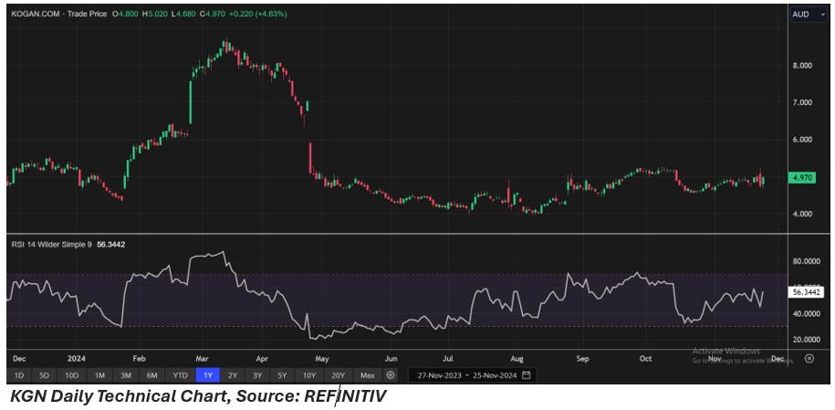- Increased wages in September 2024 are expected to boost discretionary spending and is likely to benefit Kogan.com.