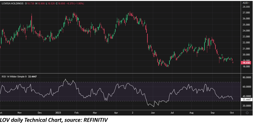 LOV shares closed 1.95% down at AUD 18.65 apiece, which is 4.31% higher than its 52-week low of AUD 17.88 apiece and 31.46% lower than its 52-week high of AUD 27.21 apiece.