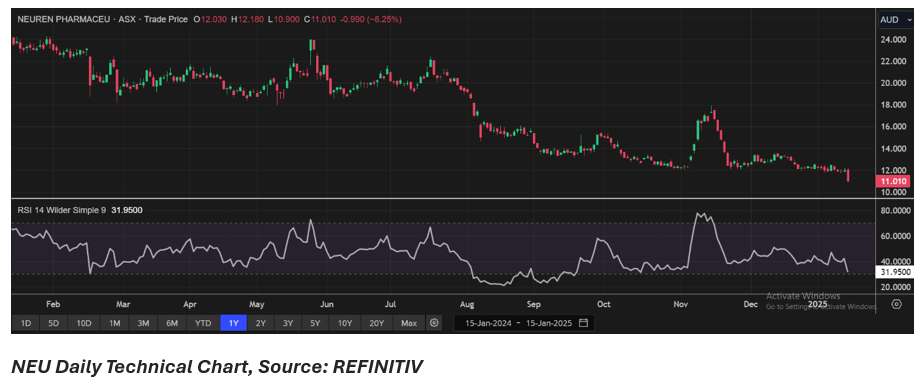 On 15 January 2025, NEU revealed that its partner, Acadia Pharmaceuticals has submitted a Marketing Authorization Application (MAA) to the European Medicines Agency (EMA) for the use of trofinetide as a treatment for Rett syndrome in patients aged two years and older.