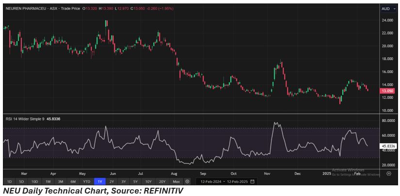 NEU shares closed 1.95% lower at AUD 13.05 per share on 12 February 2025. Over the past one year, NEU’s share price has dropped by almost 43.26% and in the last three months, it has decreased by nearly 21.10%.