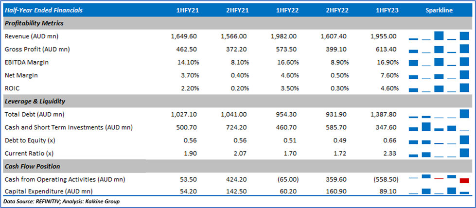 - In 1HFY23, the company recorded a 6.77% surge in underlying NPAT and a 2.70% growth in underlying EBIT