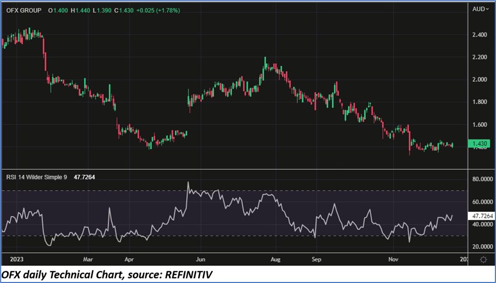 OFX shares closed 1.78% higher at AUD 1.43 apiece on 18 December 2023. Including this, the share price has dropped by nearly 40% in a year and by 25.13% in the last six months.