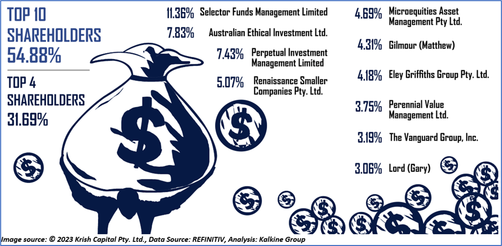 The top 10 shareholders of OFX have around 54.88% shareholding in the firm, while the top four have nearly 31.69% shareholding. The top two shareholders in the company areSelector Funds Management Limited and Australian Ethical Investment Ltd. with a shareholding of ~11.36% and ~7.83%, respectively.