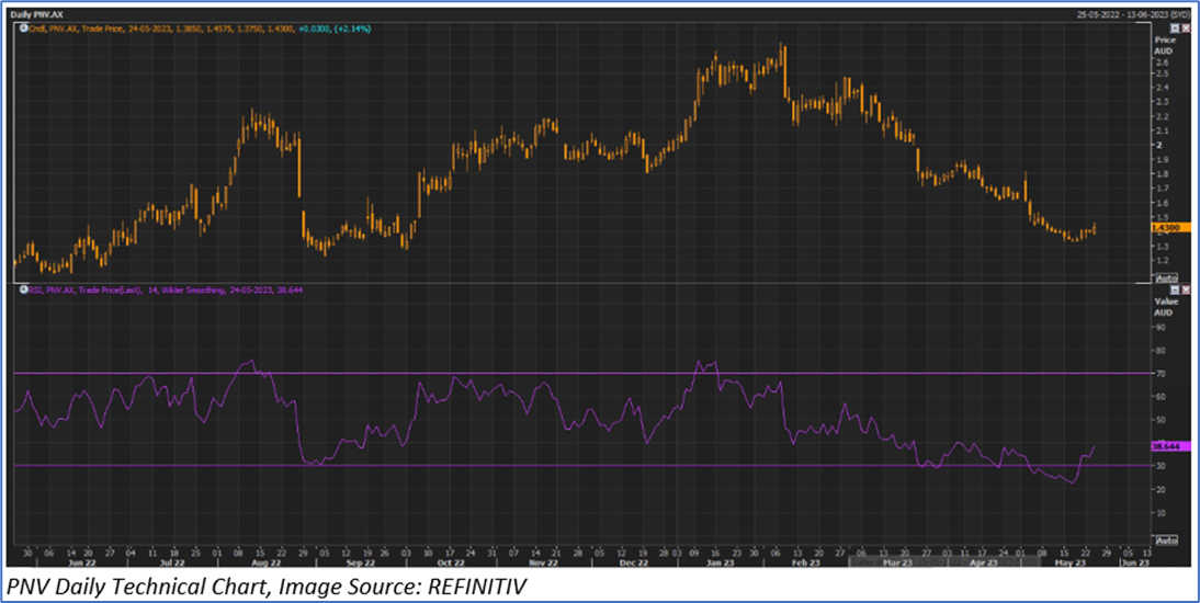 - On Wednesday, PNV shares closed 2.142% higher at AUD 1.430, taking its one-week return to 7.12%