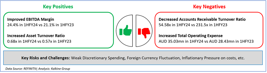 - In 1HFY24, the company recorded 25.5% YoY increase in revenue to AUD 45.1 million
