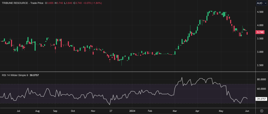 TBR shares closed 1.84% lower at AUD 3.740 apiece on 4 June 2024. With this, in the last one year, TBR’s share price has increased by 10% and in the last six months, it has shot up by 40.07%.