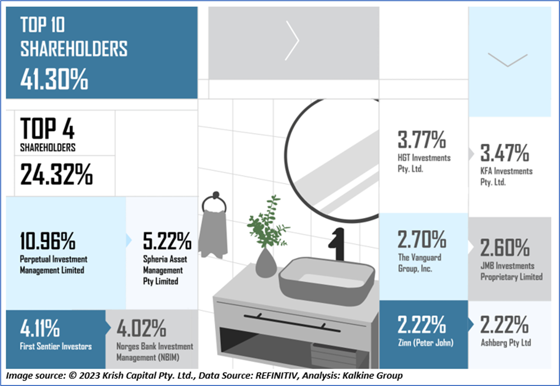The top 10 shareholders of the company together hold around 41.30% of the total shareholding. Perpetual Investment Management Limited and Spheria Asset Management Pty Limited hold the maximum stakes in the company at 10.96% and 5.22%, respectively. Here are the other top investors in the company.