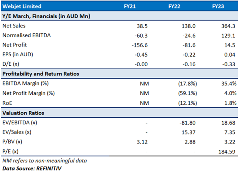 - In FY23, the company registered EBITDA of AUD 134.8 million.