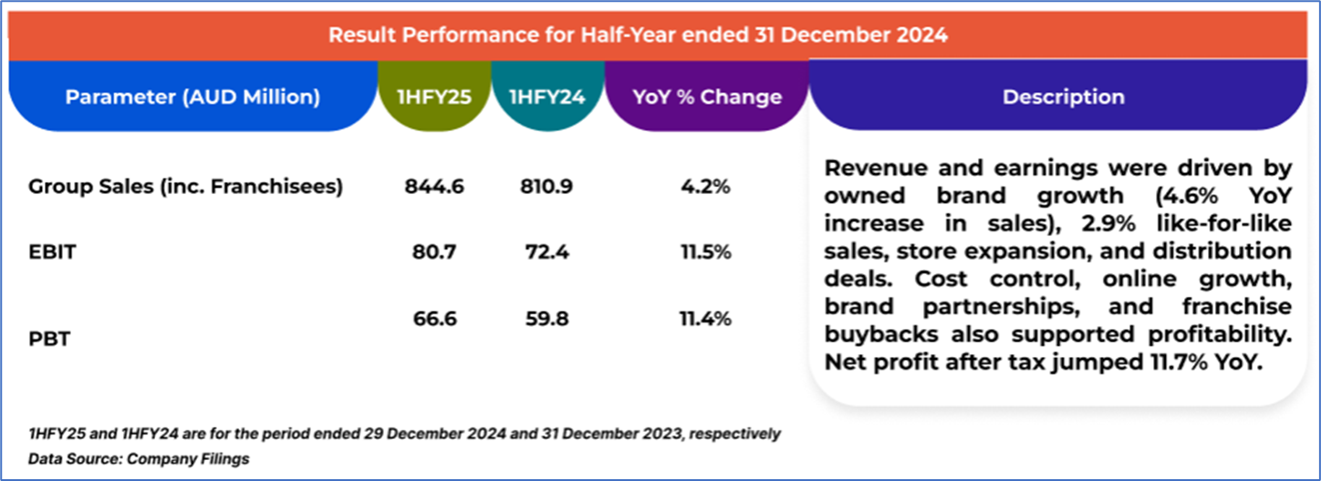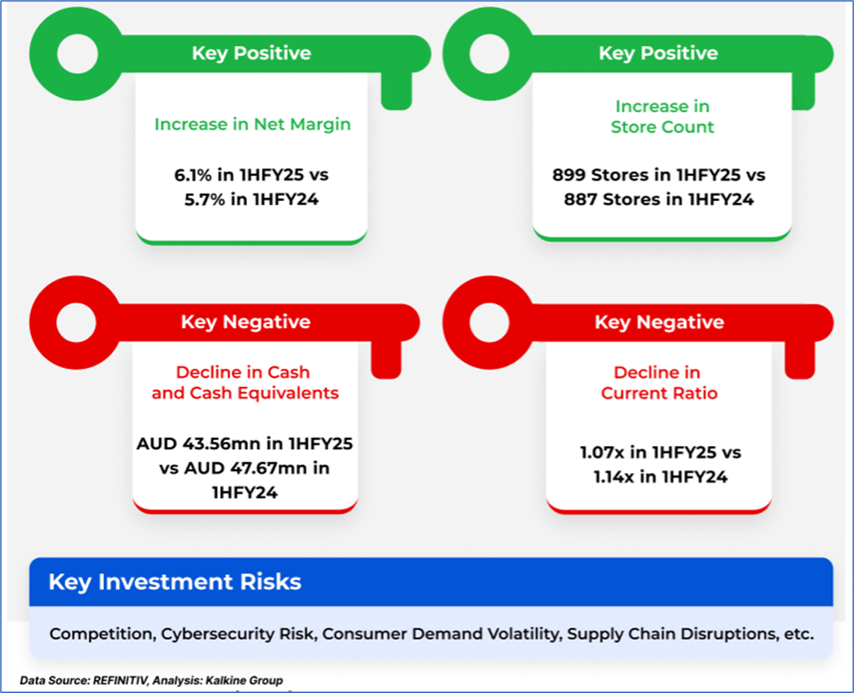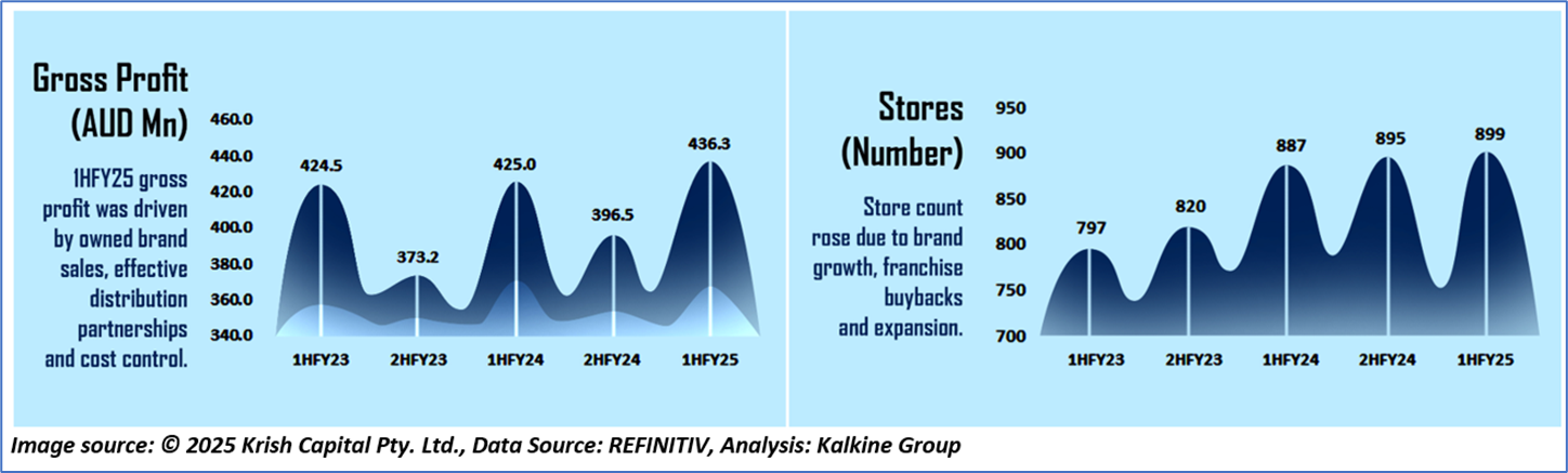 1.4: Key Metrics: AX1 reported a return on equity of 10.9% in 1HFY25 vs 7.8% of industry median. Below is captured the metrics showing the trend of gross profit and store count: