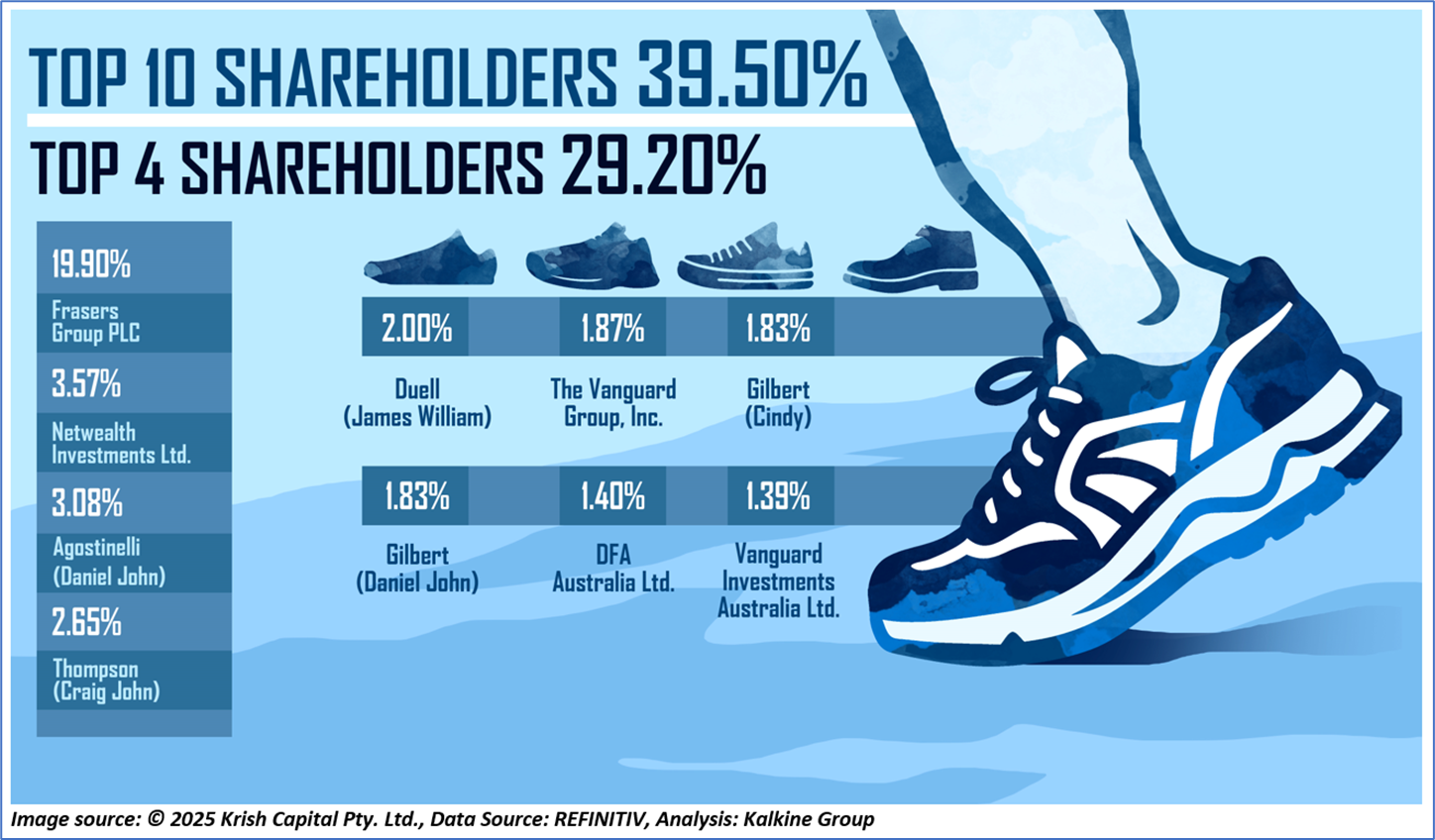 1.3: Top 10 Shareholders: The top 10 shareholders together form ~39.50% of the total shareholding. Frasers Group PLC and Netwealth Investments Ltd. are holding maximum stakes in the company at ~19.90% and ~3.57%, respectively.