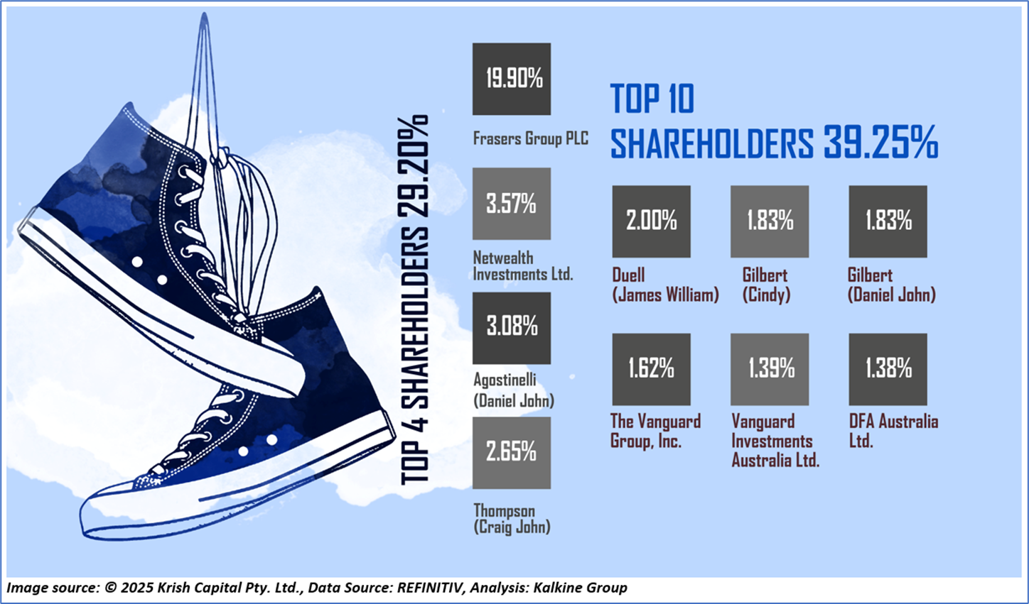 1.3: Top 10 Shareholders: The top 10 shareholders together form ~39.25% of the total shareholding. Frasers Group PLC and Netwealth Investments Ltd. are holding maximum stakes in the company at ~19.90% and ~3.57%, respectively.