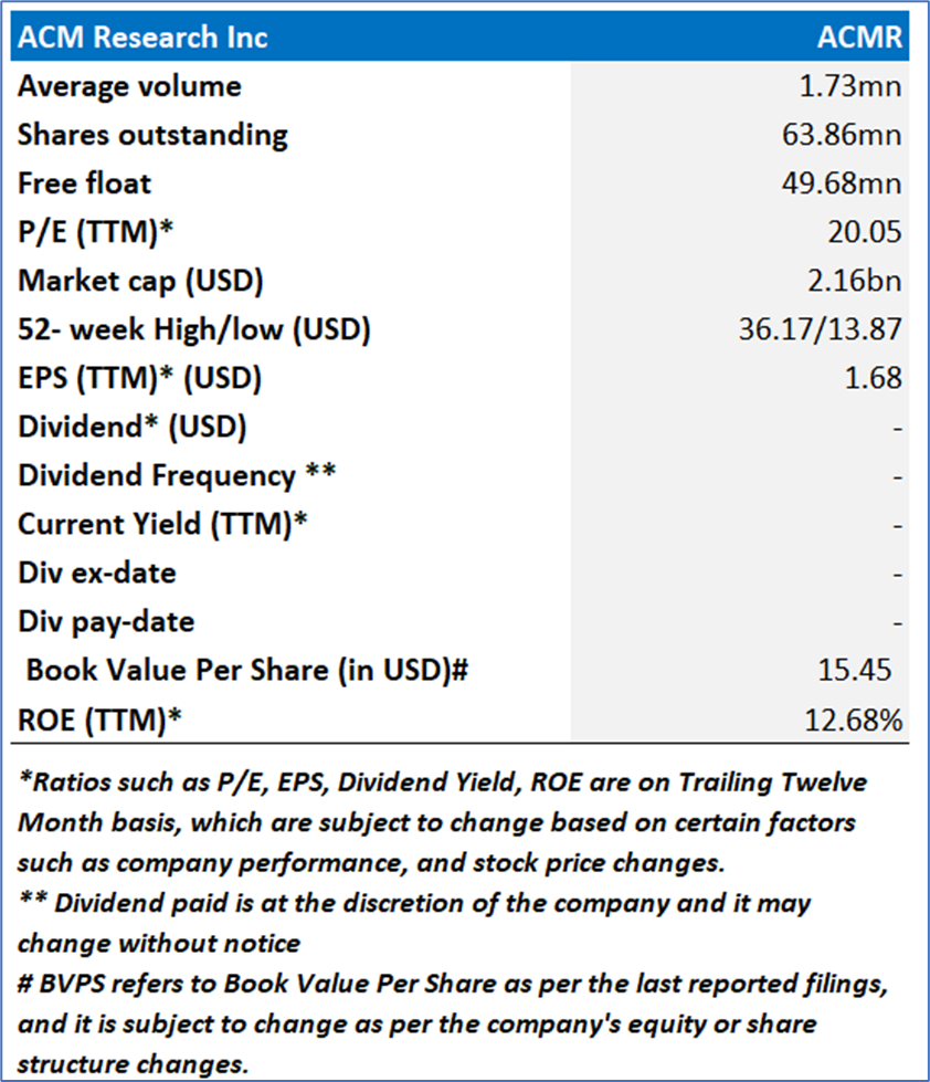 Section 1.1: ACM Research, Inc. (NASDAQ: ACMR) develops, manufactures and sells semiconductor process equipment spanning cleaning, electroplating, stress-free polishing, vertical furnace processes, track, plasma-enhanced chemical vapor deposition (PECVD), and wafer- and panel-level packaging tools, enabling advanced and semi-critical semiconductor device manufacturing.
