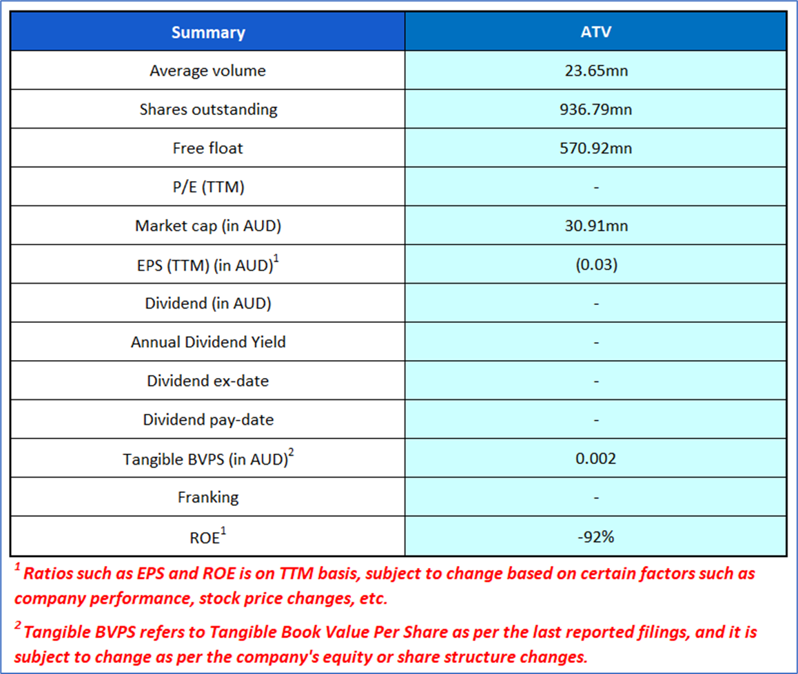 The stock has witnessed a decline of ~25% in the last 12 months. The stock has a 52-week low and 52-week high of AUD 0.007 and AUD 0.051, respectively, and is currently trading above its 52-week high-low average.