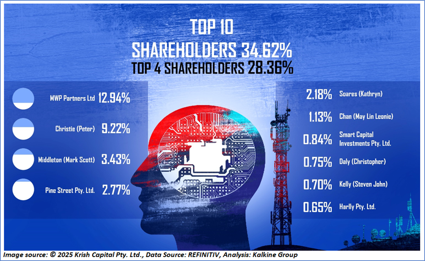 The top 10 shareholders together form ~34.62% of the total shareholding. MWP Partners Ltd and Christie (Peter) hold a maximum stake of 12.94% and 9.22%, respectively.