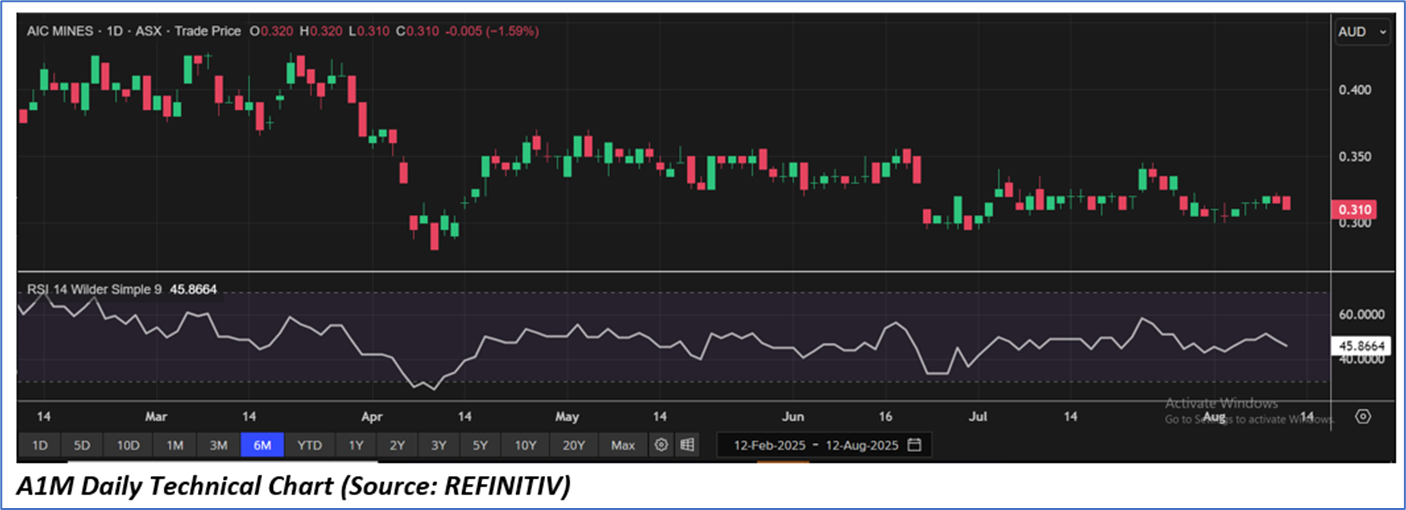 The stock price has gone down by ~2.50% in the last one month and over the last one year, stock prices increased by ~4.00%. The stock has a 52-week low and 52-week high of AUD 0.280 and AUD 0.428, respectively, and is currently trading close to the 52-week-low level. A1M was last covered in a report dated ‘8 July 2025’.