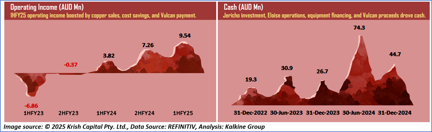 1.4: Key Metrics: A1M registered a current ratio of 2.75x in 1HFY25 compared with 2.34x in 1HFY24. Below is captured the metrics showing the trend of operating income and cash: