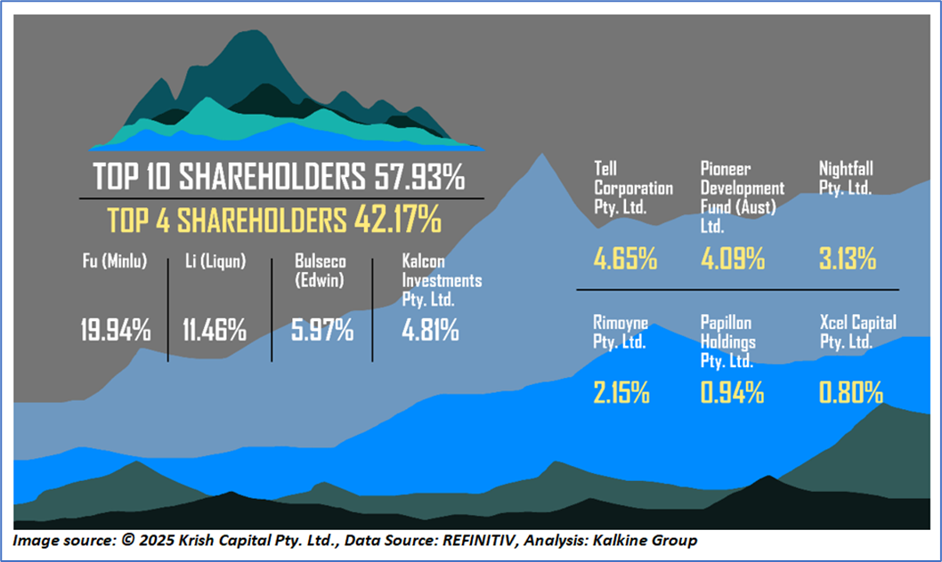 The top 10 shareholders together form ~57.93% of the total shareholding. Fu (Minlu) and Li (Liqun) are holding maximum stakes of 19.94% and 11.46%, respectively.