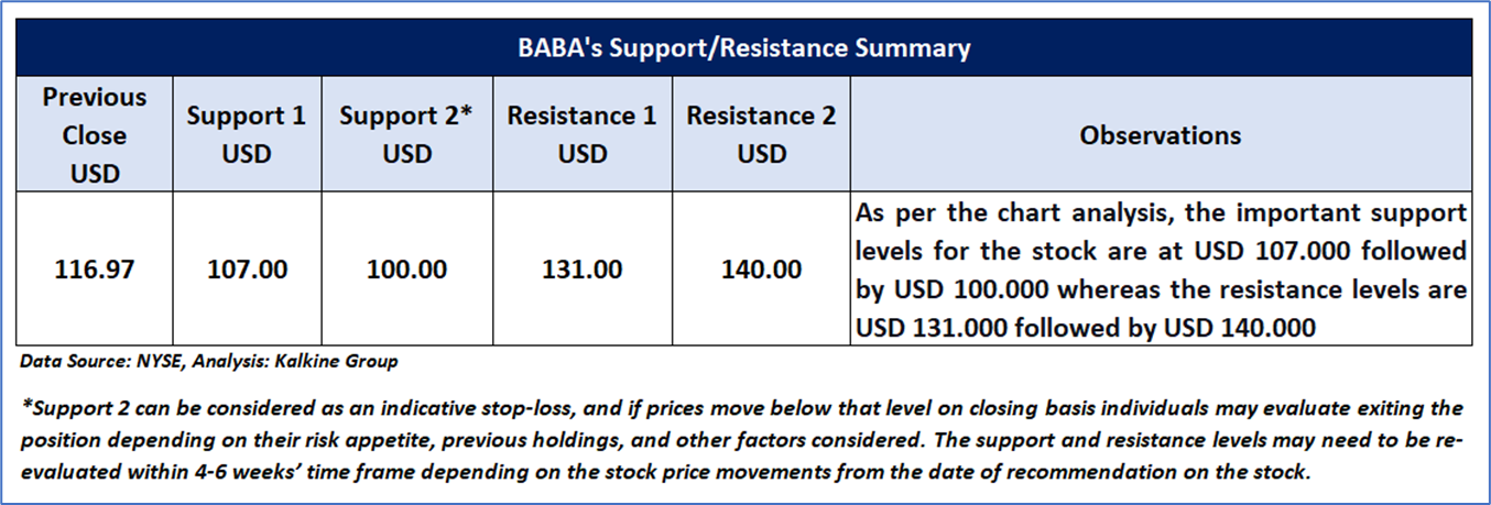 BABA Daily Technical Chart, Data Source: REFINITIV