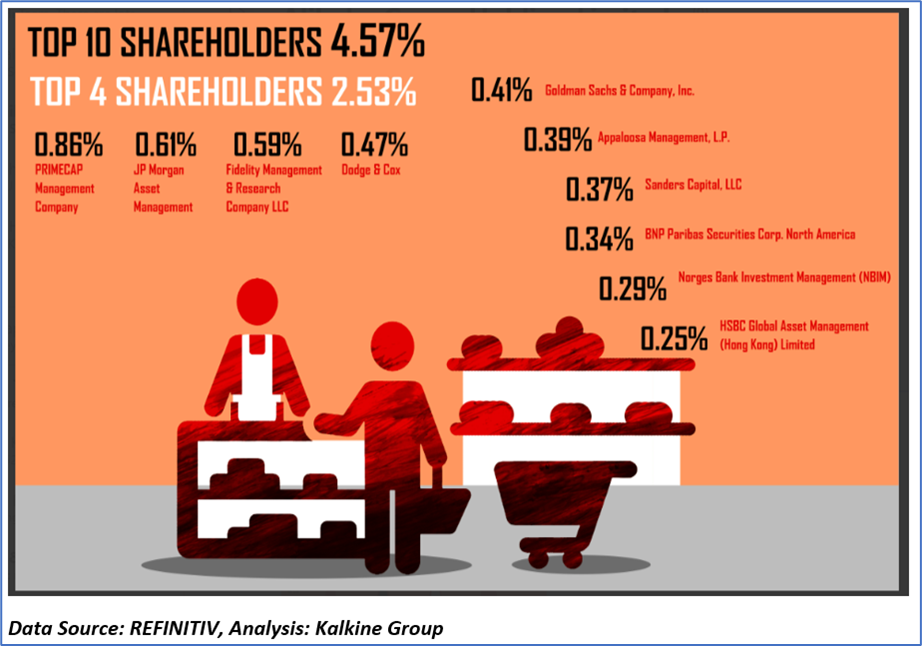 1.3 Top 10 Shareholders: The top 10 shareholders have been highlighted in the chart below, which together form ~4.57% of the total shareholding.