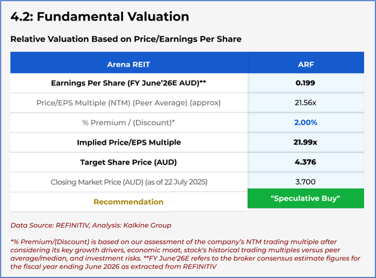 Company Overview: Arena REIT (ASX: ARF) is a property group operating as the developer, owner, and manager of social infrastructure properties across Australia. The company has leased social infrastructure properties under its portfolio to a diversified tenant base in the childcare and healthcare sectors. Kalkine’s Real Estate Report covers the Investment Highlights, Key Financial Metrics, Risks, Technical Analysis along with the Valuation, Target Price, and Recommendation on the stock.